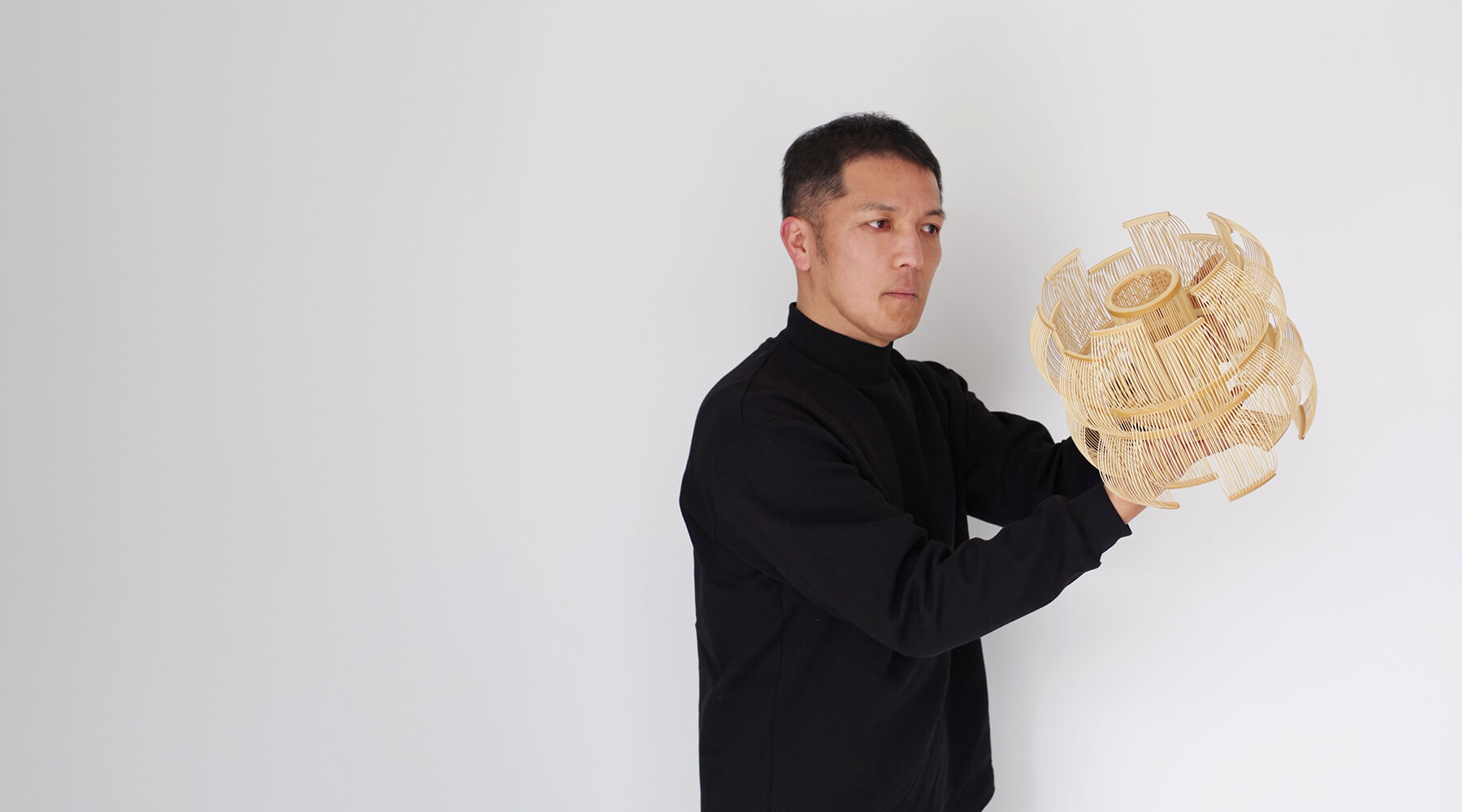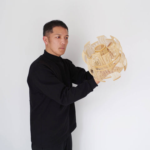 The pendant is carefully handcrafted in Japan by the artist Tani Toshiyuki together with bamboo masters using roughly 600 bamboo strips.